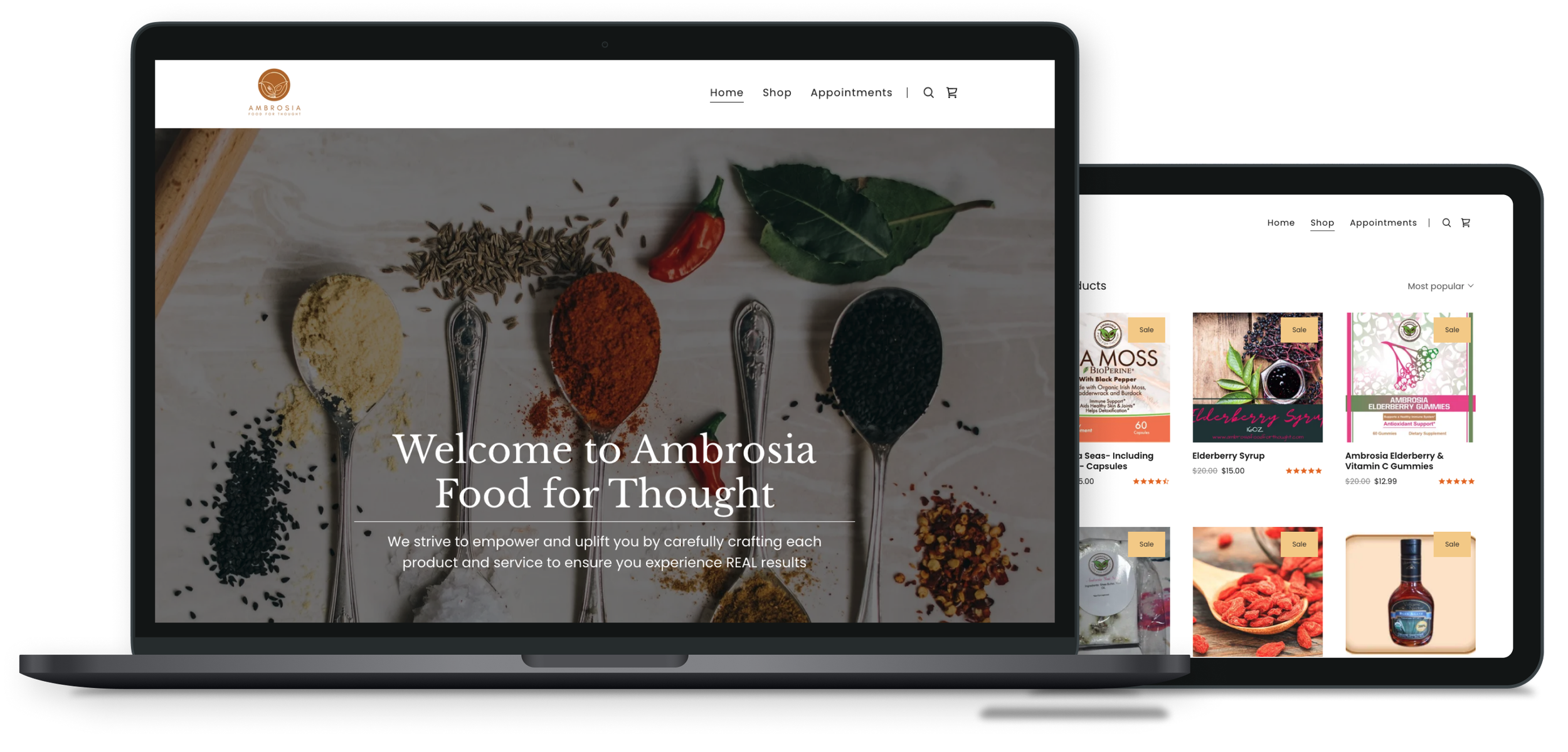 Ambrosia Food for Thought is a woman-owned holistic wellness brand offering plant-based products, educational resources, and community workshops. As the brand expanded and its products became available through national retail channels, the existing website no longer reflected the credibility, clarity, or trust required to support growth.